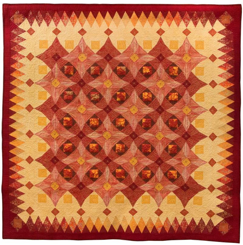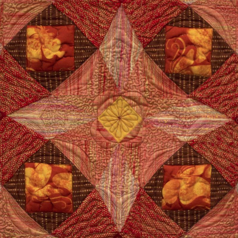 Cotton and silk/cotton blend, wool batting; Machine pieced and quilted.