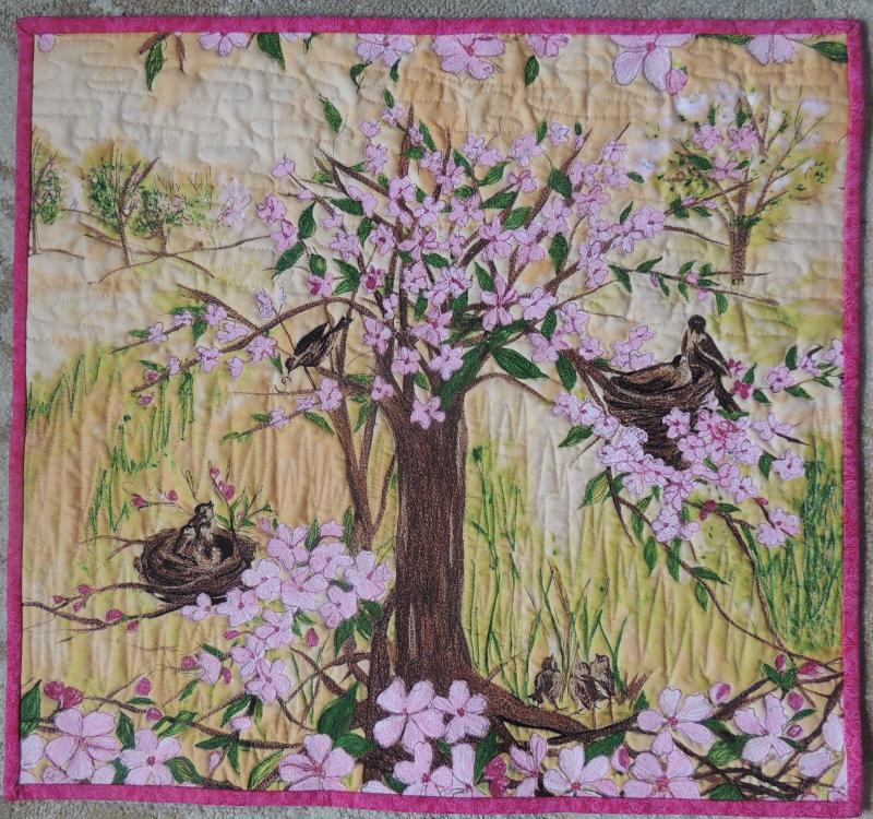 Thread painting on a limited edition pre-printed panel